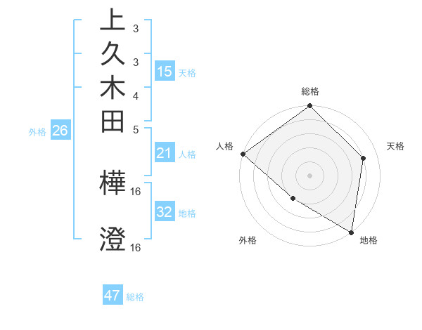 上久木田 樺澄さんの総格は47画の5点!