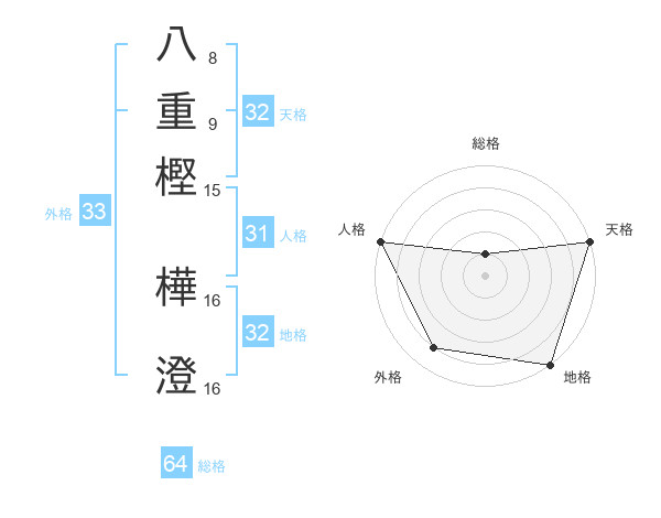 八重樫 樺澄さんの天格は32画の5点!