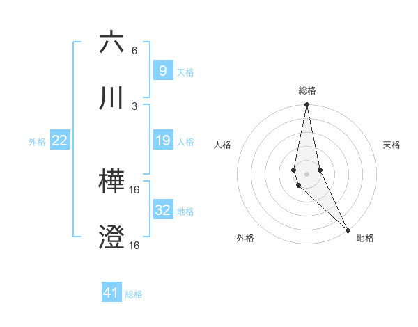 六川 樺澄さんの外格は22画の1点!