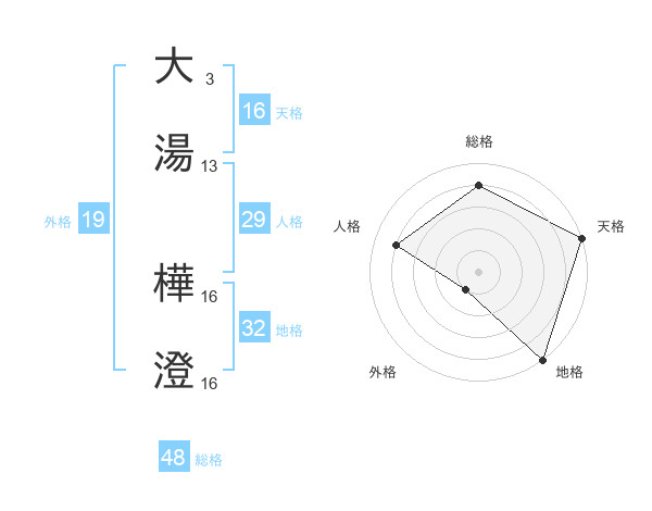 大湯 樺澄さんを姓名の画数から五運を鑑定