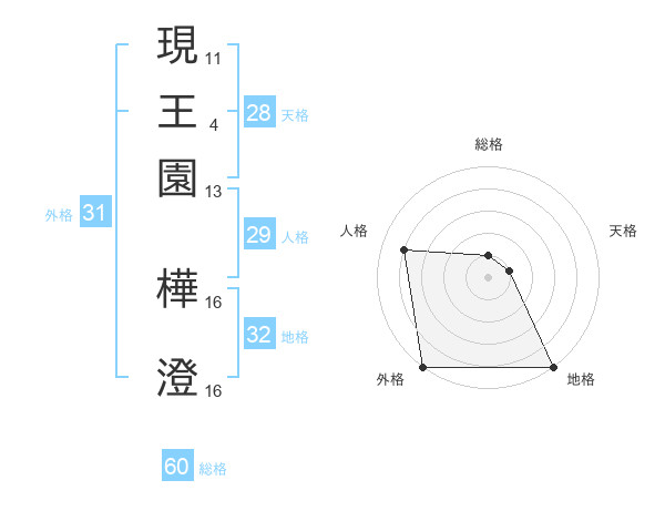 現王園 樺澄さんを姓名の画数から五運を鑑定