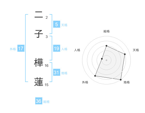 二子 樺蓮さんの地格は31画の5点!