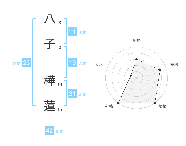 八子 樺蓮さんを姓名の画数から五運を鑑定
