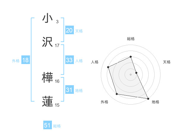 小沢 樺蓮さんを姓名の画数から五運を鑑定