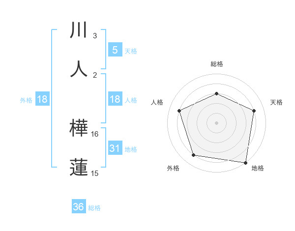 川人 樺蓮さんの総格は36画の3点!