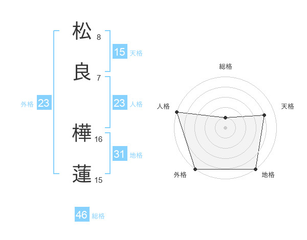 松良 樺蓮さんの天格は15画の4点!