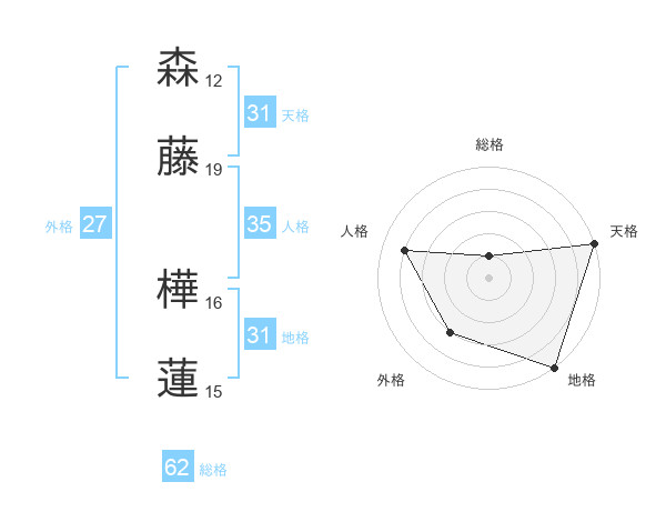 森藤 樺蓮さんの天格は31画の5点!