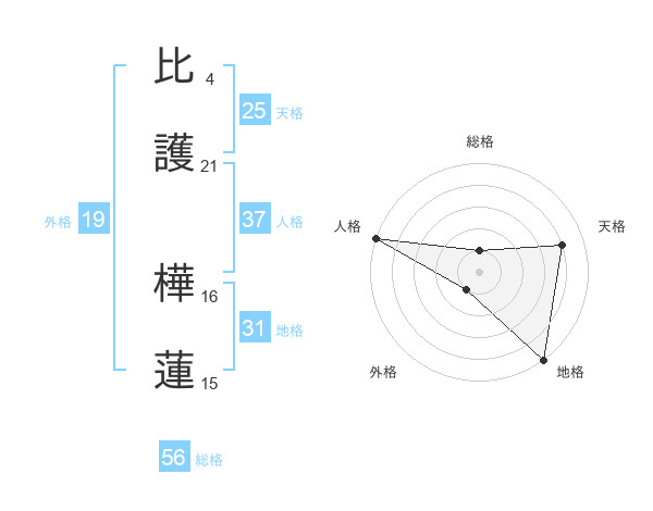 比護 樺蓮さんを姓名の画数から五運を鑑定