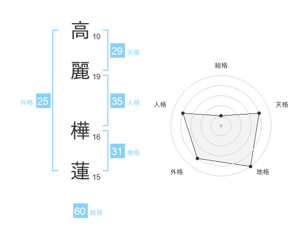 高麗 樺蓮さんの総格は60画の1点!