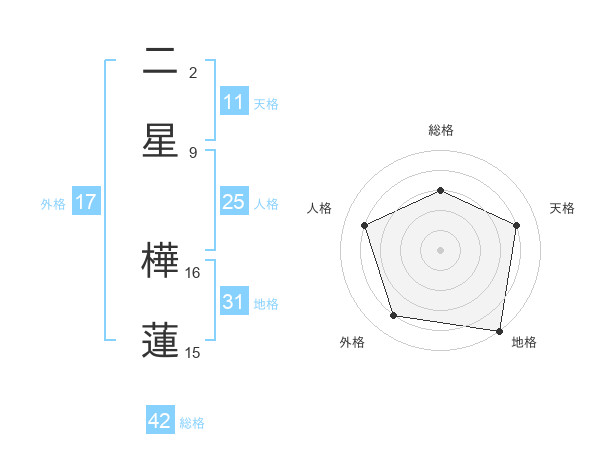 二星 樺蓮さんの地格は31画の5点!