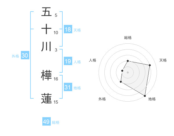 五十川 樺蓮さんを姓名の画数から五運を鑑定