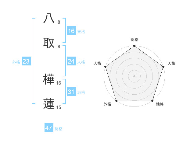 八取 樺蓮さんの総格は47画の5点!