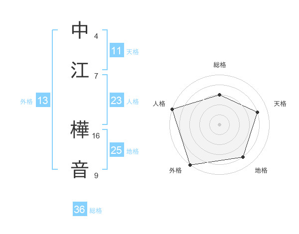 中江 樺音さんの外格は13画の5点!