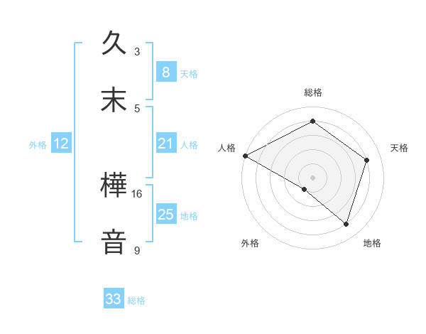 久末 樺音さんの総格は33画の4点!
