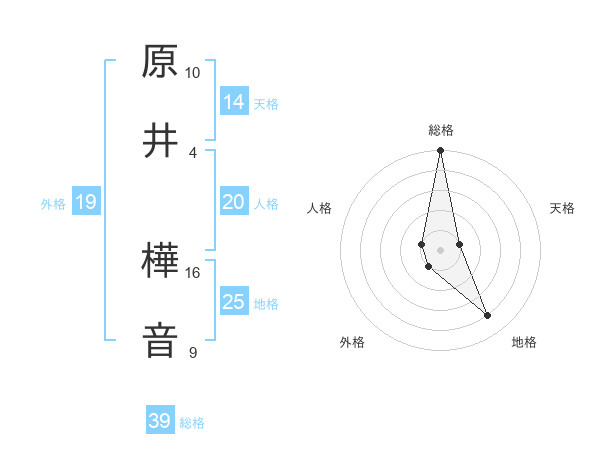 原井 樺音さんの総格は39画の5点!