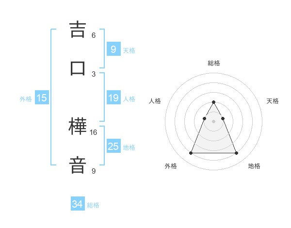 吉口 樺音さんの総格は34画の2点!