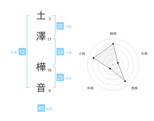 土澤 樺音さんの総格は45画の4点!