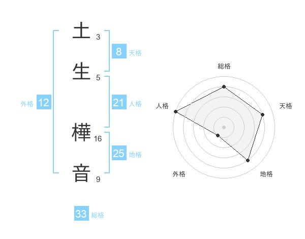 土生 樺音さんを姓名の画数から五運を鑑定