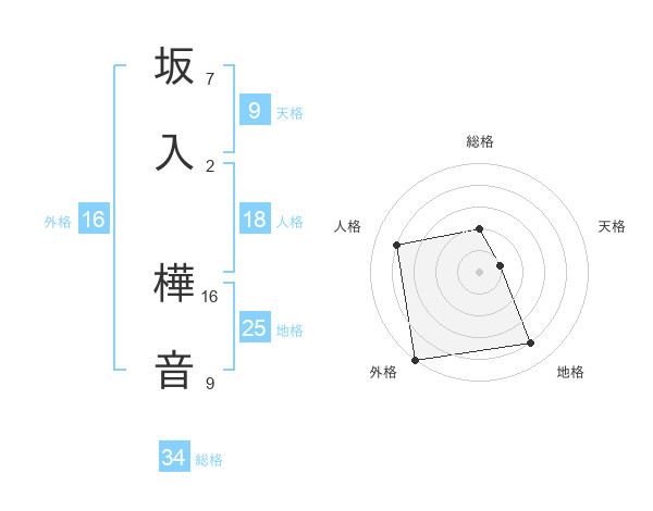 坂入 樺音さんの総格は34画の2点!