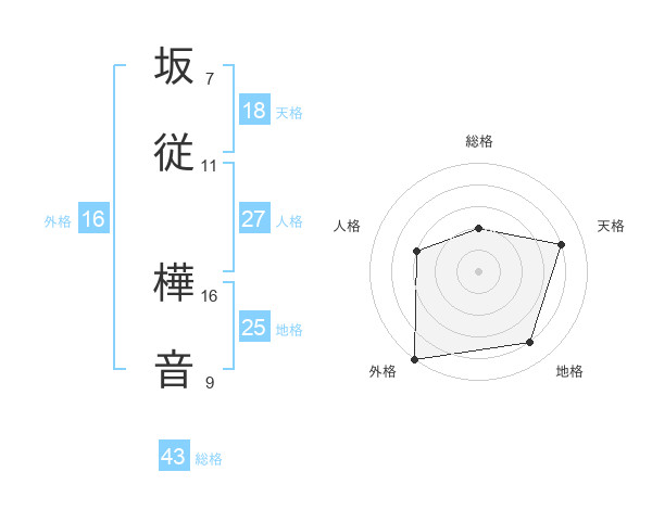 坂従 樺音さんの総格は43画の2点!