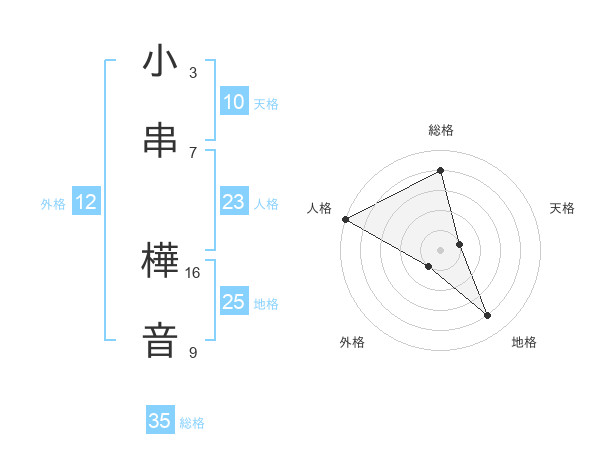 小串 樺音さんの総格は35画の4点!