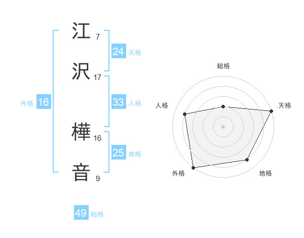 江沢 樺音さんを姓名の画数から五運を鑑定
