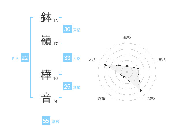 鉢嶺 樺音さんを姓名の画数から五運を鑑定