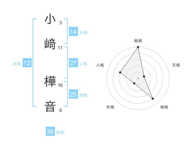 小﨑 樺音さんの総格は39画の5点!