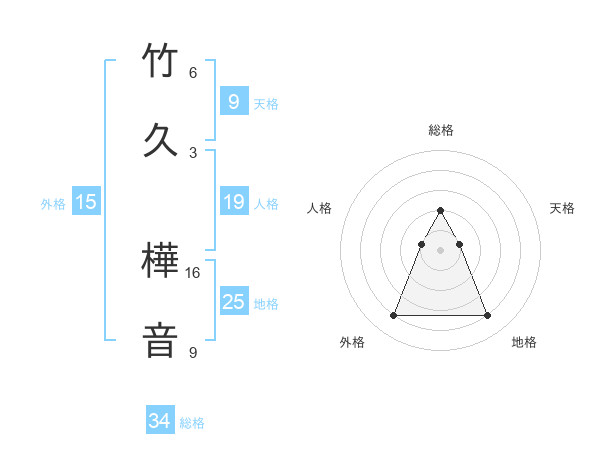 竹久 樺音さんを姓名の画数から五運を鑑定