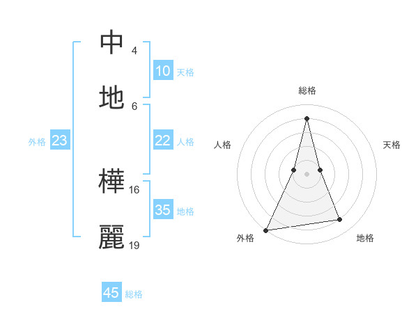 中地 樺麗さんの総格は45画の4点!