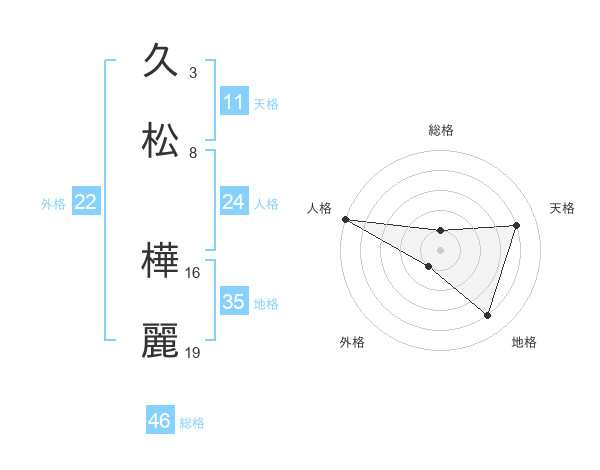 久松 樺麗さんの天格は11画の4点!