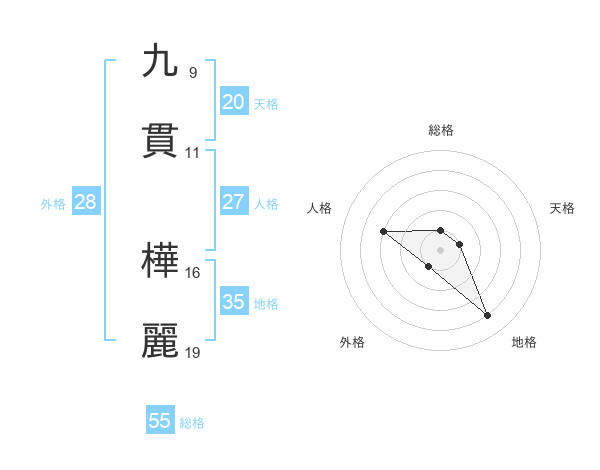 九貫 樺麗さんを姓名の画数から五運を鑑定