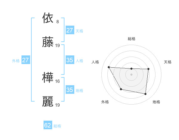 依藤 樺麗さんを姓名の画数から五運を鑑定