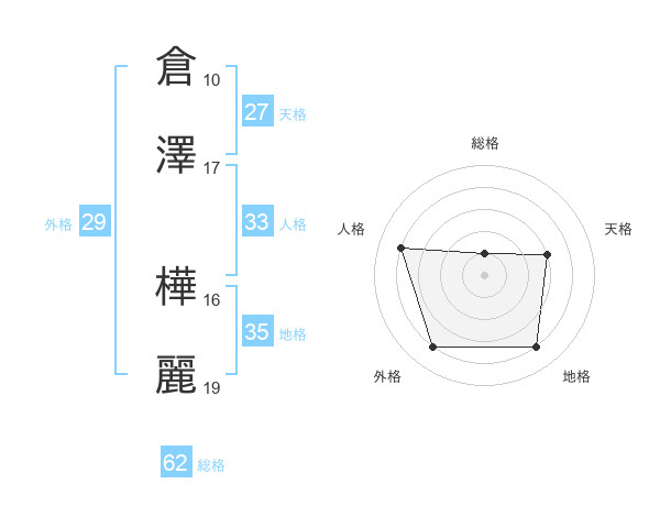 倉澤 樺麗さんの総格は62画の1点!