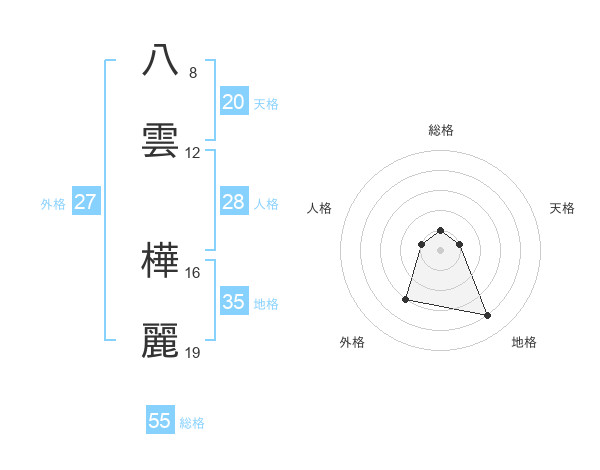 八雲 樺麗さんの天格は20画の1点!