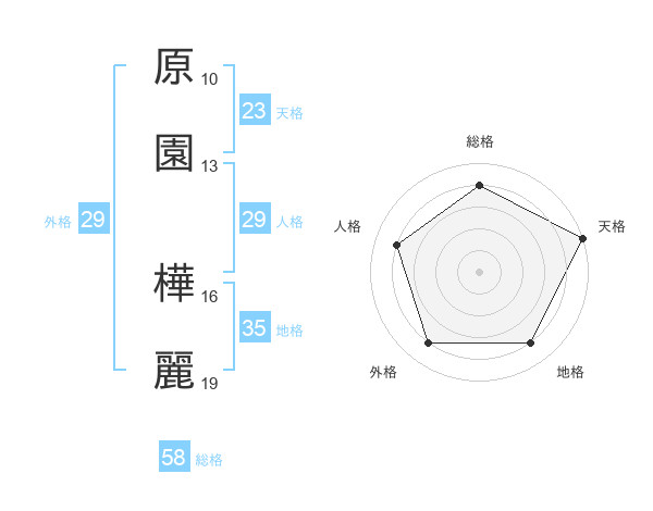 原園 樺麗さんを姓名の画数から五運を鑑定