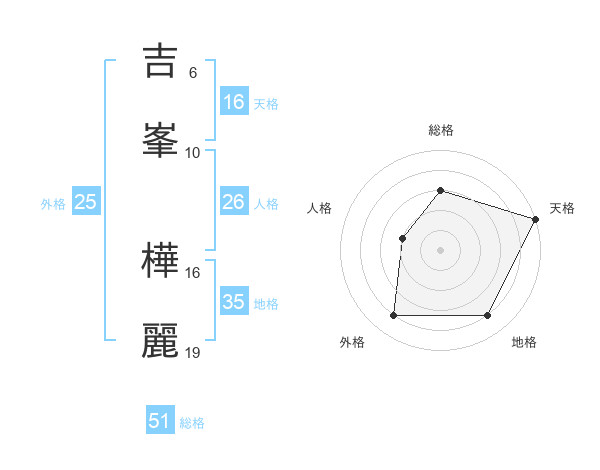 吉峯 樺麗さんの総格は51画の3点!