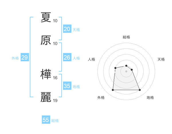夏原 樺麗さんの総格は55画の1点!