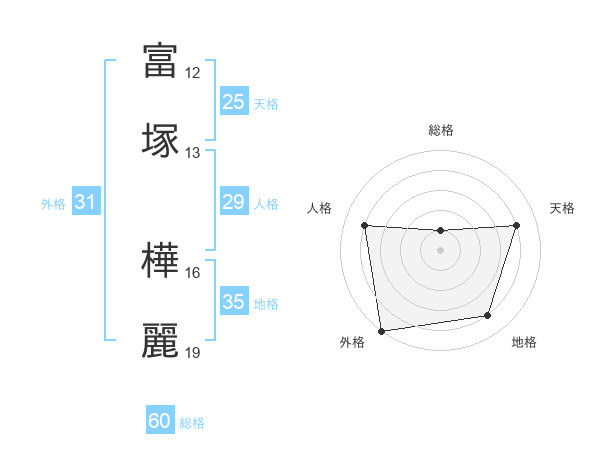 富塚 樺麗さんの総格は60画の1点!