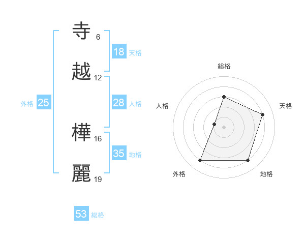 寺越 樺麗さんを姓名の画数から五運を鑑定
