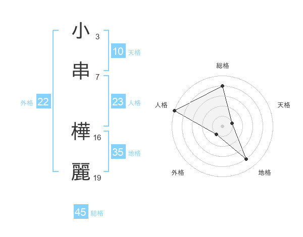 小串 樺麗さんの総格は45画の4点!