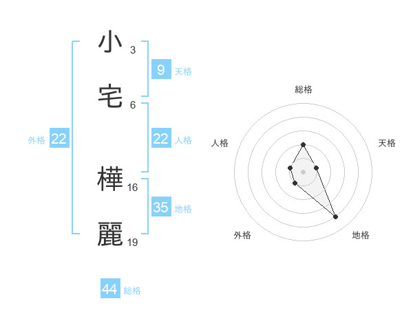 小宅 樺麗さんを姓名の画数から五運を鑑定