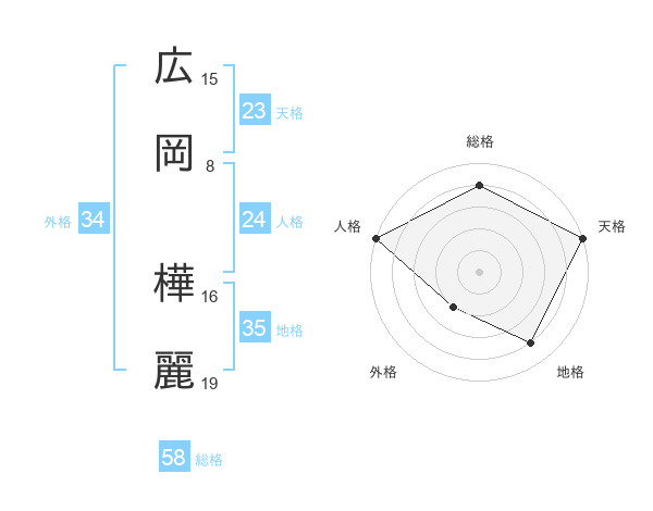広岡 樺麗さんの総格は58画の4点!