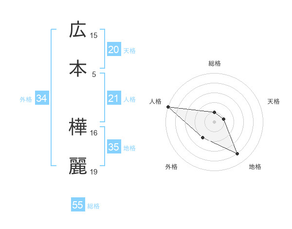広本 樺麗さんを姓名の画数から五運を鑑定
