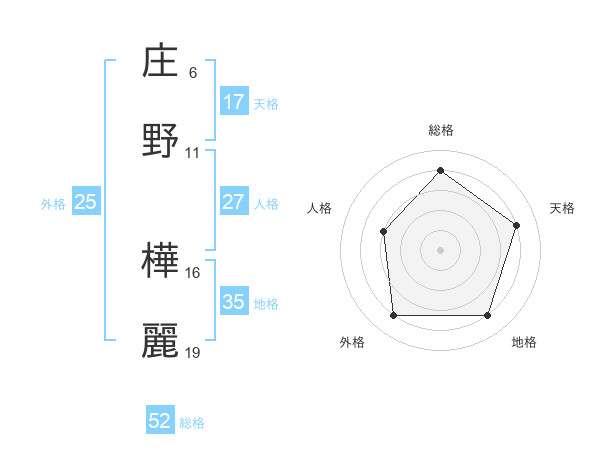 庄野 樺麗さんを姓名の画数から五運を鑑定