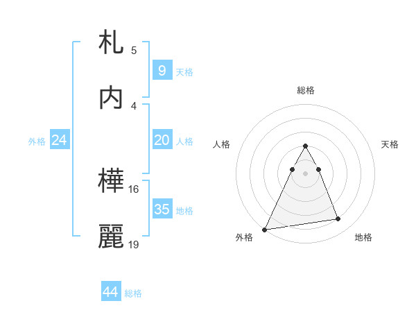 札内 樺麗さんの総格は44画の2点!