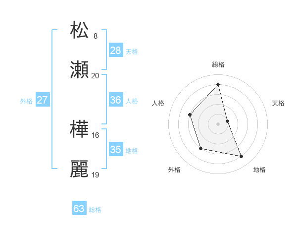松瀬 樺麗さんの総格は63画の4点!