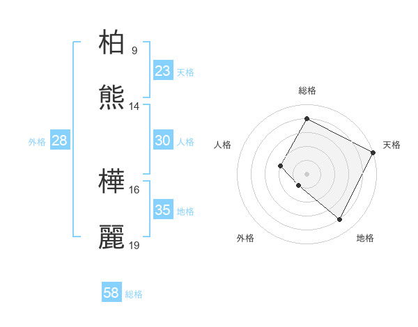 柏熊 樺麗さんの総格は58画の4点!