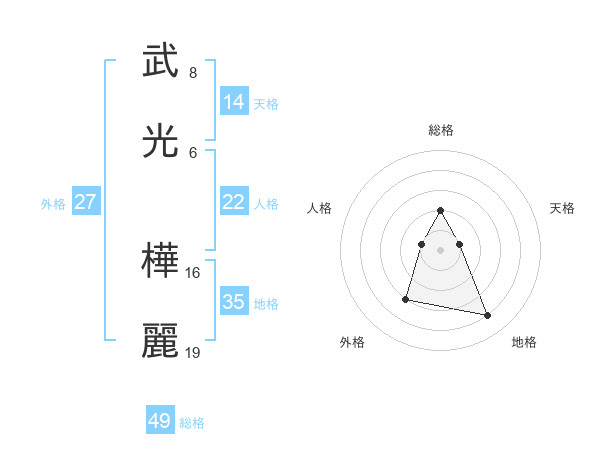 武光 樺麗さんの総格は49画の2点!