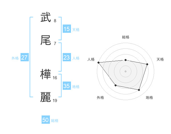 武尾 樺麗さんの総格は50画の2点!
